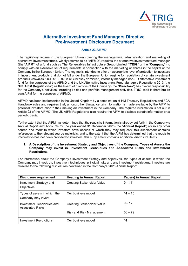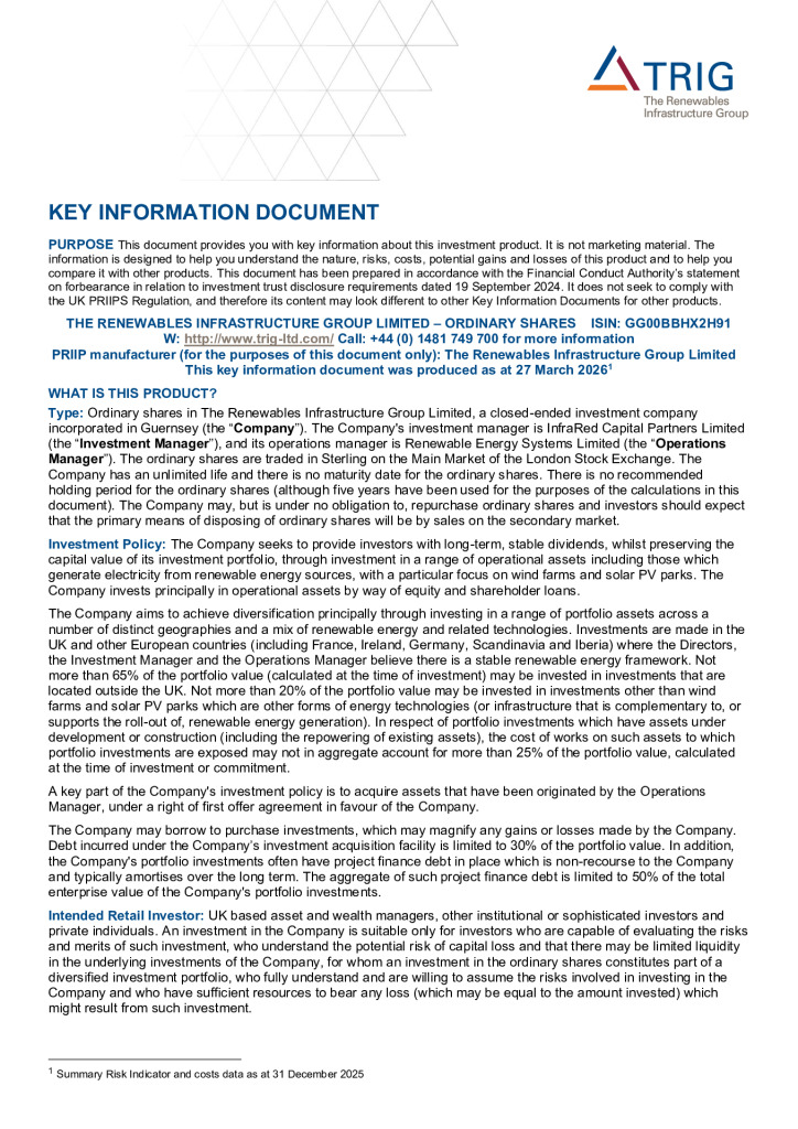 TRIG is a FTSE 250 investment company targeting resilient income and long-term capital growth from a highly diversified, cash-generative portfolio of renewables infrastructure assets. Our portfolio includes onshore wind farms, offshore wind farms, solar parks and battery storage projects located across the UK and Europe.