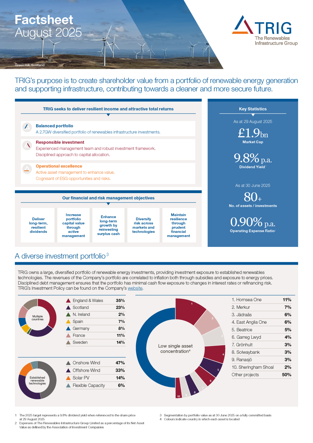 The vast majority of TRIG’s revenues are fixed or backed by long-term contracts and regulatory frameworks, many of them linked to inflation. This gives us among the highest levels of contracted revenue in the sector, reducing exposure to short-term power price movements and supporting predictable cashflows for shareholders.